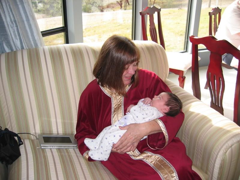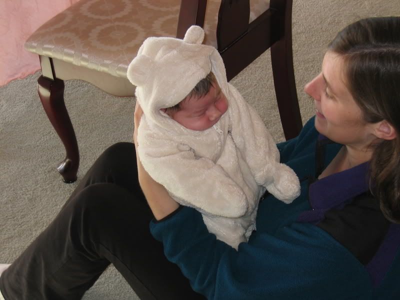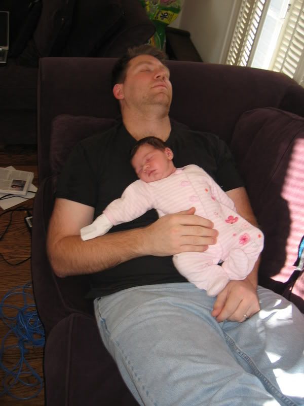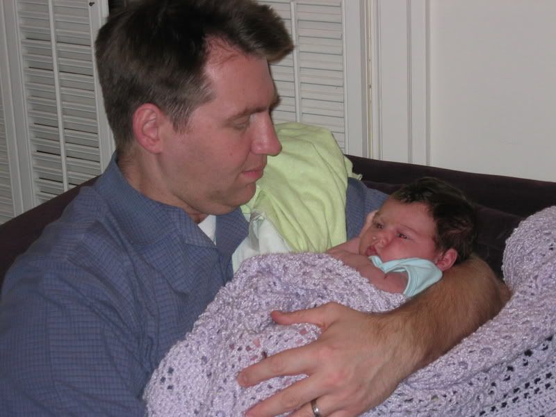 My favorites are probably the ones of Cassandra and her daddy, especially the ones where they're both asleep together. It's adorable. The cuteness factor is in the mega-obnoxious zone. Not that my sister and her baby aren't likewise cuter than bunnies being petted by kittens, or whatever. It's just that the pictures of my sister and the baby together are heart-meltingly gorgeous. My sister looks so happy. I can already see her in the role of the grandma pictures that are on here (and boy-oh-boy, do grandmas on both sides look thrilled with baby). I have never seen her that transcendently happy. That thing they say about pregnant women and new moms "glowing"? That's real.