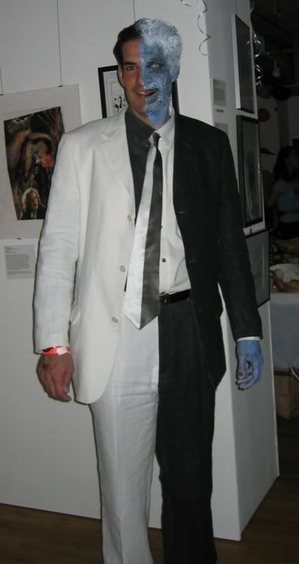 My absolute favorite and the most impressive by far was Two-Face. He left for another party before he could best costume over all, the stupid head. The best costume came down to a guy dressed as Kenny from South Park, which is terribly unfair as it's not a Saturday morning cartoon, and a girl I chatted up immediately because she was the first person to arrive in costume after us and she was dressed as Lois Lane from the Superman Adventures cartoon. She was actually worried she wouldn't be recognized and had a press pass with an animated series icon on it and everything. I went squeeee and everything, but they didn't give her the prize. For Kenny! For KENNY!?