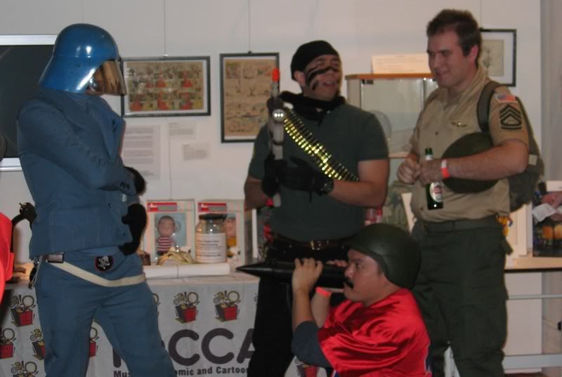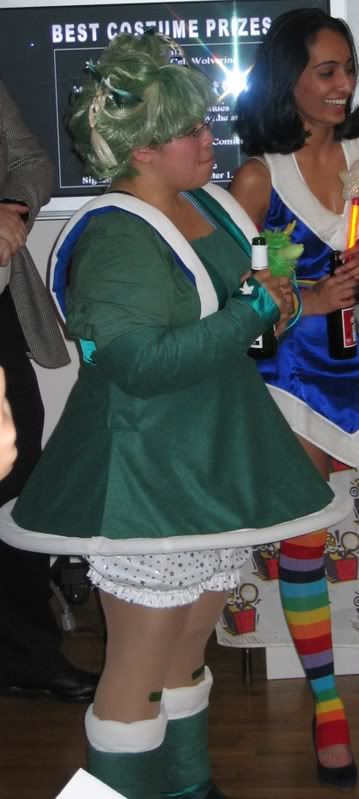 Bigger disappointment still? Some girl came with the cheap-o Ricky's knock-off of a Rainbow Brite costume and totally got the girl in the amazing Patty O'Green costume (Look! She even had the band-aids and the Sprite and everything!) to enter the contest as a group. So she didn't win for her amazing costume; the G.I. Joe's did. What a waste. I was even madder when she showed me that her costume actually reverses to become a proper Rainbow Brite costume! I don't have a picture of that, but maaaaaan. Also, Princess Peach and Mario were robbed when Best Couple went to Archie and Jughead. Just goes to show--slashers always win.